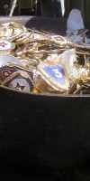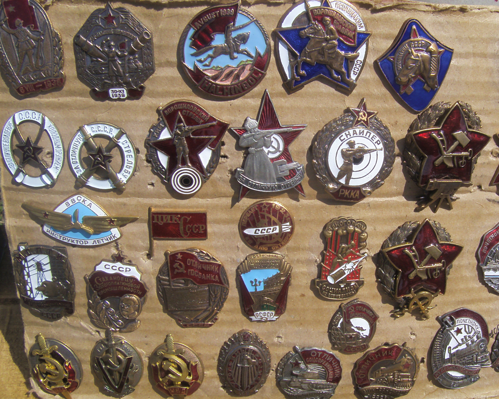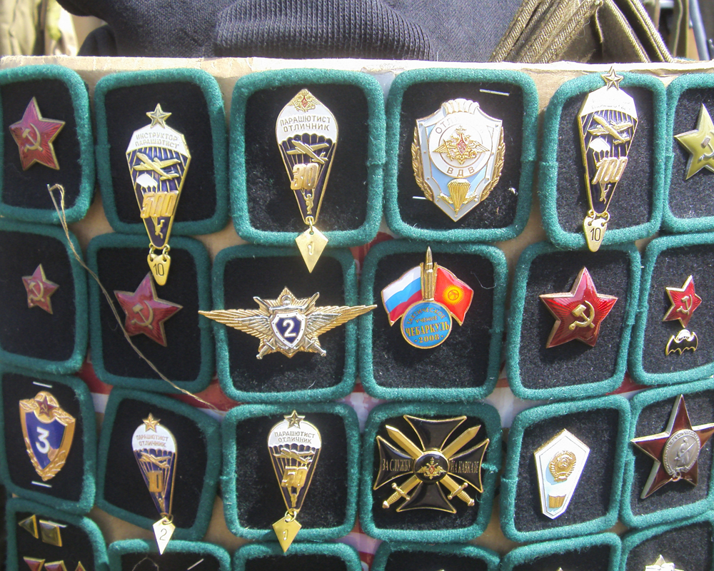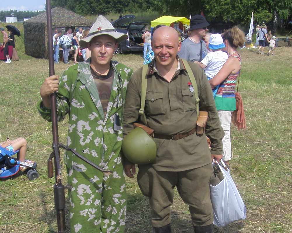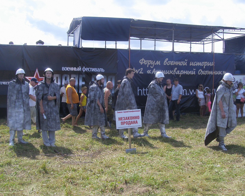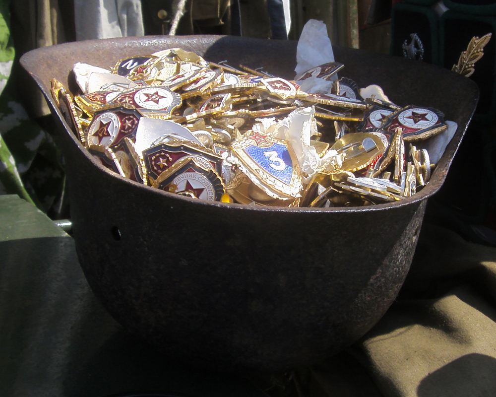 Приняла участие в «Поле боя-2013» и компания «Гарнизон». Мы представили здесь не только образцы формы, военные палатки, обмундирование, плащ-палатки, вещмешки, каски, фуражки, армейскую обувь, но и значки и военную символику времён СССР.